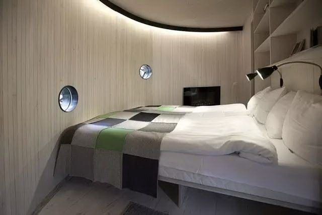 酒店共计划建造25间客房,其中第一期共有6个主题房间,目前已建成5个,分别命名为“鸟巢”、“镜魔方”、“机舱”、“蓝色椎体”和“UFO”。其中“UFO”最具神秘感,那让我们来看看“UFO”内部是什么样的吧?