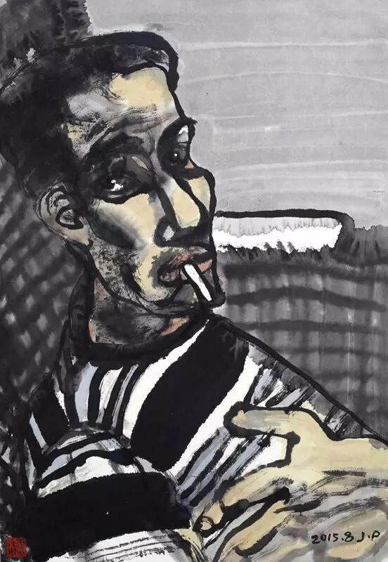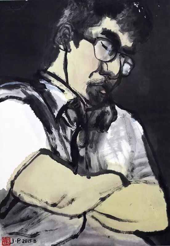 在放弃具象表述之后,季平又进一步将具象的人物造型推向平面化,这样便产生了具有抽象构成关系的视觉结构,在艺术处理上升华了隐藏在物像背后的结构关系。简约的笔墨,充分表达了中国传统墨韵的意趣,从线条疏密之间的排列组合上,我们能体会艺术家对平面构成的修养和理解。特别值得一提的是艺术家对视觉边缘线的处理,于随意的墨色间呈现出极为精准的虚实关系。同样的外理方式,在戏剧人物的组画中,我们又能感受到上世纪的味道,没见一丝着墨,却能让人感悟到画面之外的气息。