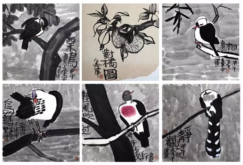 《鸟语》六幅 纸本水墨 35x35cm 2016