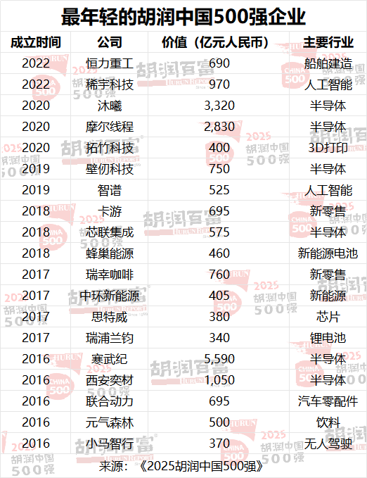 胡润新势力企业和青年企业家系列关注的是近十年成立的创业企业和45岁及以下的创始人。