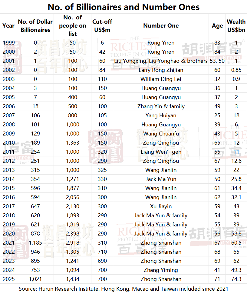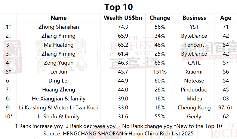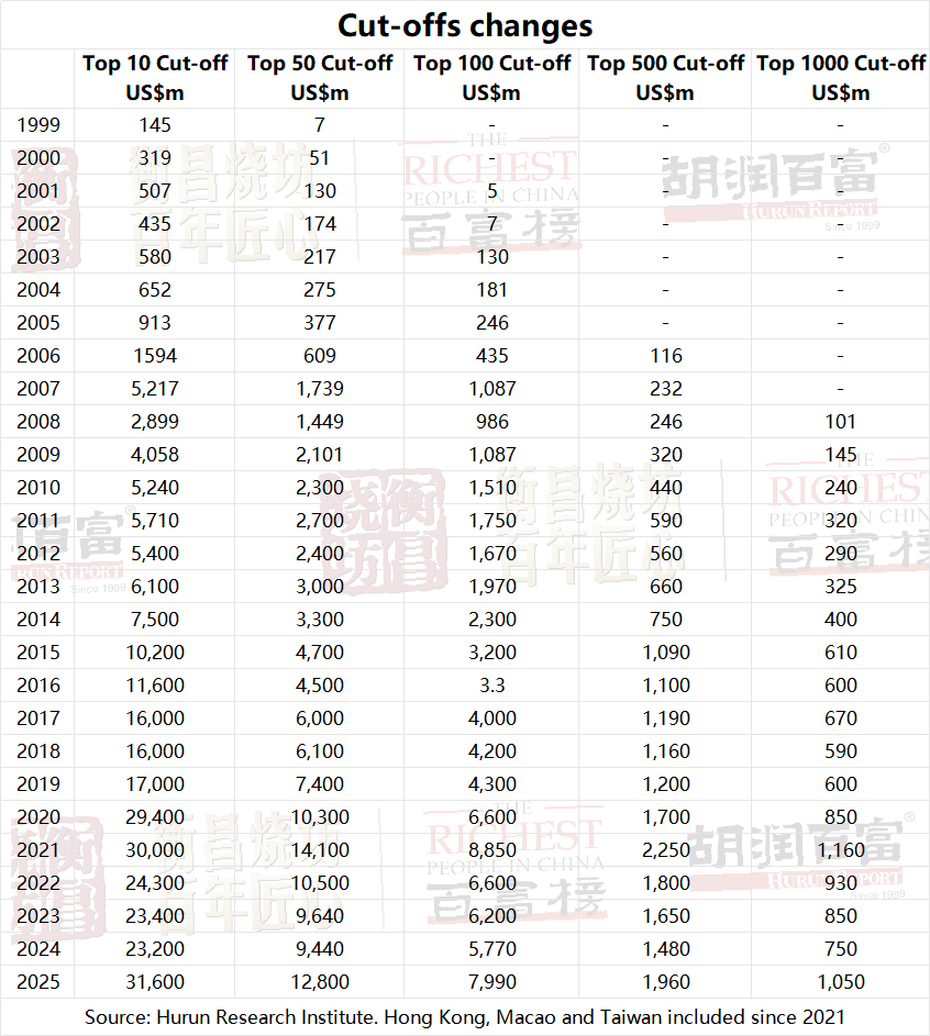 The List is a snapshot of wealth as of 1 September 2025. The exchange rate used for the US dollar was CNY 7.13, for the Hong Kong dollar was CNY 0.92, for the New Taiwan Dollar was CNY 0.23.