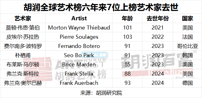 胡润全球艺术榜六年来7位上榜艺术家去世