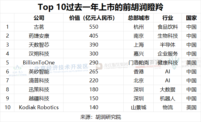 Top 10过去一年上市的前胡润瞪羚