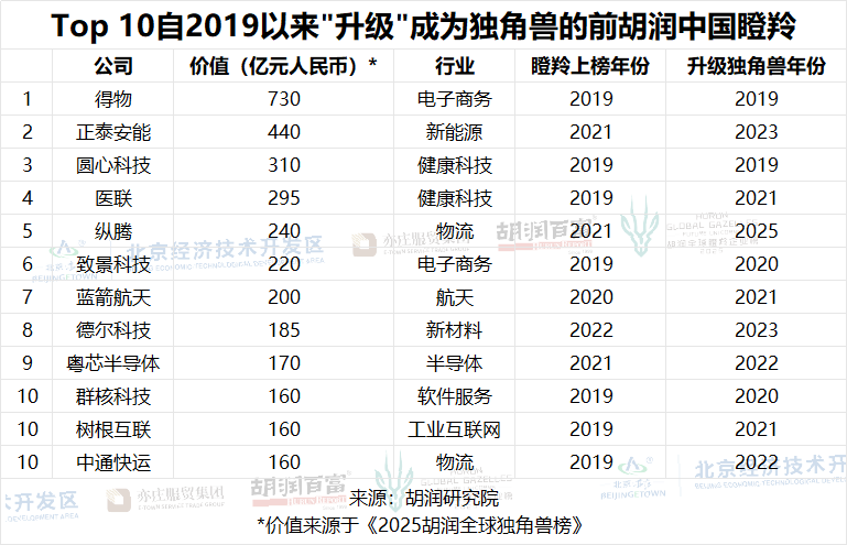 Top 10自2019以来“升级”成为独角兽的前胡润中国瞪羚